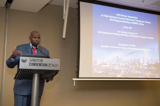 开班仪式上,非洲妇产科协会主席Namory Keita教授、国际微无创医学学会主席David Cranston教授、Bara医院代理院长 Stephen Mankupane分别致欢迎辞,他们对参加培训的学员朋友们表示热烈欢迎,认为以超声治疗为代表的微无创治疗技术已经受到全球医学届的极大关注,相信本届中国举办的发展中国家培训班将进一步促进微无创医学领域的合作与交流,加快超声治疗技术成果在非洲的推广应用。